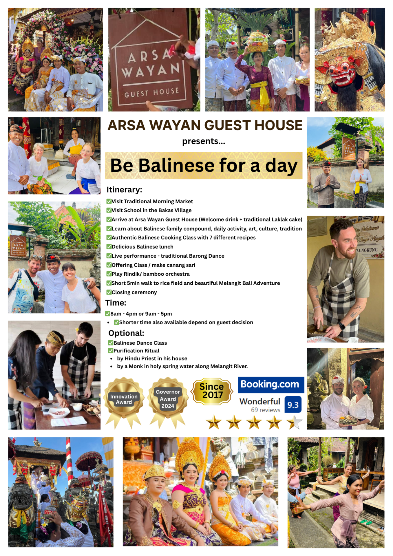 Situated in the ocean south of the equator Bali has a humid and warm climate. But still a person from Northern Europe doesn’t find it too warm. Daily temperatures from 25 – 35 degrees and warm nights of 15 – 20 degrees. Actually as a Danish summer at its best. The temperatures are nearly the same all year round. European Winter Months – from Dec. until March – are the rainy season in Bali, but don’t worry, the rain usually comes as heavy showers in the mornings and seldom lasts for long, and the sun again shines from the blue sky.